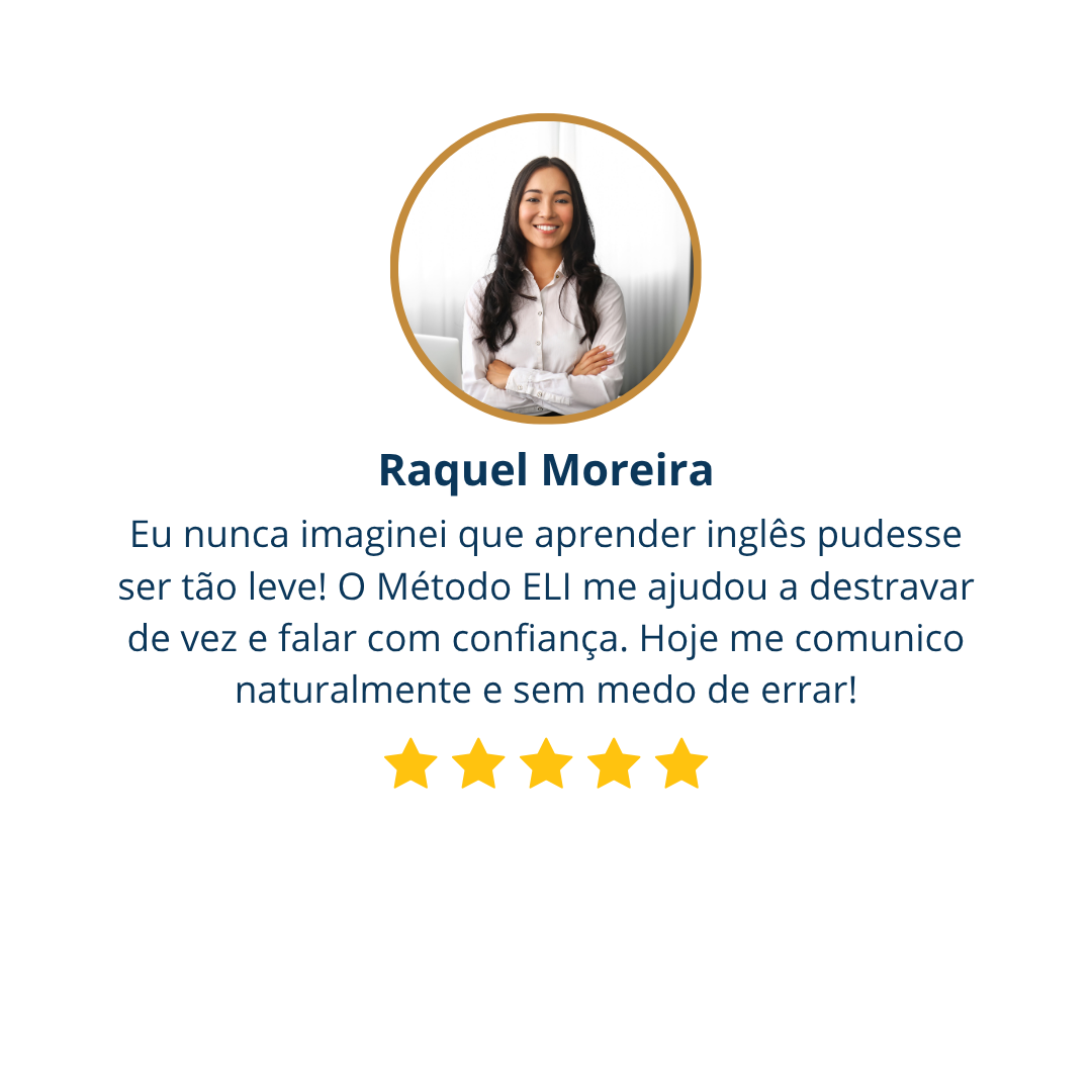 Sou professora de inglês e criadora do Método ELI, um programa feito para quem quer finalmente falar inglês de forma natural, leve e sem medo de errar.